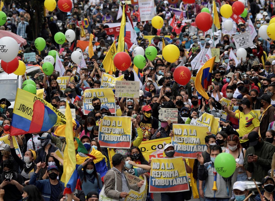 Colombia vive un paro nacional desde este pasado miércoles que se ha traducido en manifestaciones masivas en las principales ciudades del país en protesta por la pretensión del Gobierno de Iván Duque de llevar a cabo una reforma tributaria que la clase trabajadora y las clases populares han entendido que es un nuevo intento de cargar sobre sus hombros el peso de la recaudación de impuestos para cerrar el agujero dejado por la crisis de la pandemia en las arcas estatales.